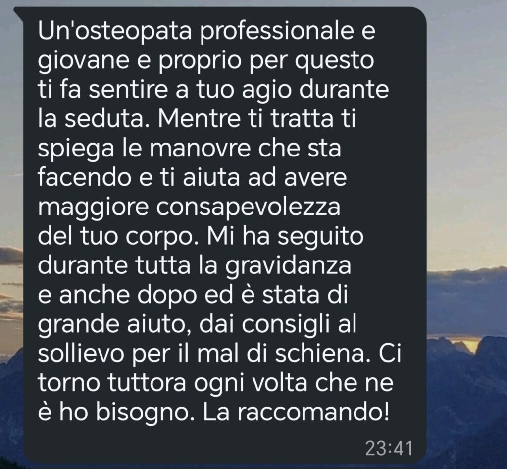 e vuoi davvero risolverli?Prenota una valutazione gratuita, e scopri come molte donne hanno già risolto i dolori pelvici e della gravidanza e sono tornate a vivere senza limitazioni, grazie al mio Metodo Osteopatico Integrato.